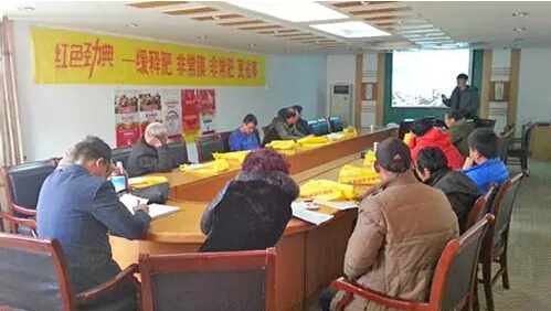 内容:红色劲典缓(控)释肥推广会议由山东蓬莱缓(控)释肥厂家红色劲典业务员组织,邀请当地红色劲典缓(控)释肥零售商与会。