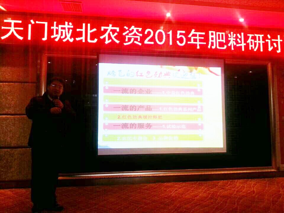 会上,红色劲典销售人员就天门市场的操作思路、当前市场行情以进行的分析,并详细的介绍了红色劲典公司规模,各系列产品以及公司的周到、专业的服务(其中重点推介了红色劲典引入先进科技生产的新型肥料—缓控释肥料),会议最后宣贯了天门市场2014年冬储政策,得到了经销商们的一致认可和积极响应。