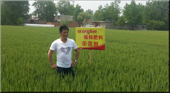 寿县红色劲典经销商柏跃顶深有感触的说:“我推广缓释肥料几年了,销量逐年都在递增,今年在小麦上表现特别明显,小麦长势非常良好,今年预测增产15%以上。”