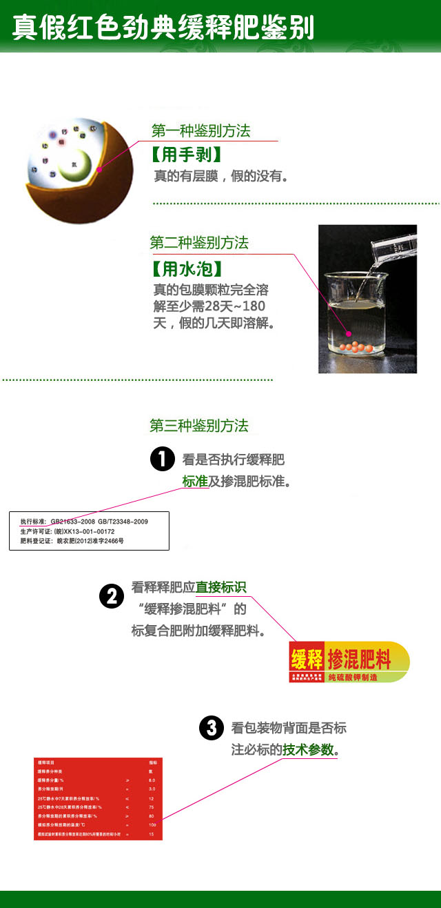在新型复合肥市场中,缓(控)释肥发展势头并不比水溶肥增效控失肥慢,而是独树一帜,逐渐成为众多农户的新宠。并且有很多小厂家借助缓(控)释肥做噱头,标榜自己的产品是真正的缓(控)释肥产品,而实际上很多产品都是非合格产品。这里缓(控)释肥厂家红色劲典农技专家为大家介绍如何辨别缓(控)释肥真伪!